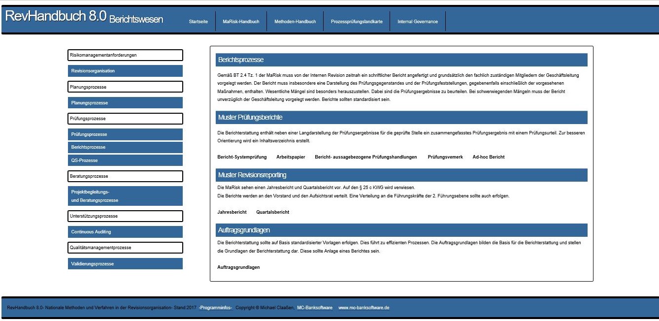 Internetseite wird insbesondere Software für die Arbeit in einer Bankrevision vorgestellt. Diese können jedoch in Rahmen von Beratungen oder der Revision im Finanzdienstlesitingsbereich eingesetzt werden.